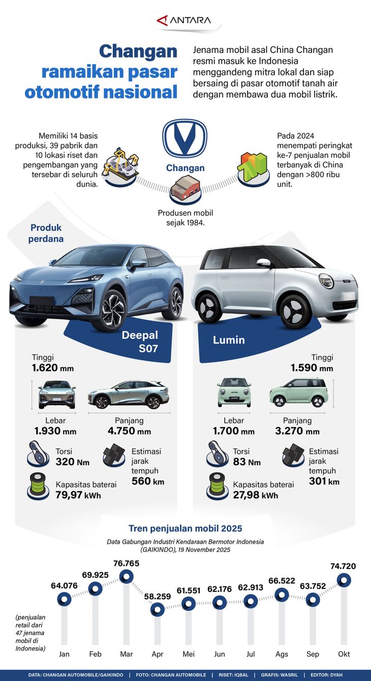 Jenama mobil asal China Changan resmi masuk ke Indonesia menggandeng mitra lokal dan siap bersaing di pasar otomotif tanah air dengan membawa dua mobil listrik.